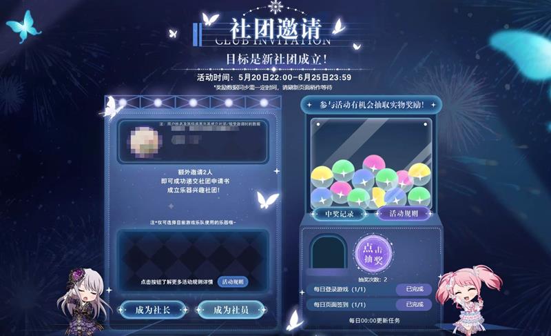 活动期间,所有拥有游戏账号的玩家都可以选择成为社团社长或普通社员。社长需要在活动页面绑定账号后创建社团,系统会自动生成专属邀请码。通过分享这个邀请码,社长可以招募其他玩家加入自己的社团。每成功邀请一名新社员,社长就能获得一次抽奖机会。