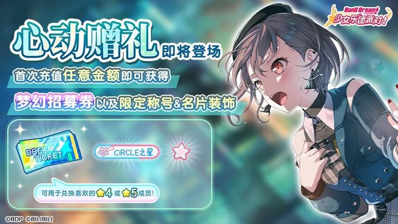 随着《BanG Dream! 少女乐团派对!》六周年纪念日的临近,游戏内商店新增了【心动赠礼】页面,为玩家们准备了一系列惊喜。从5月26日维护后开始,BanG Dreamer们只需充值任意金额,即可在该页面领取包括【★4&★5梦幻招募券】、【限定称号】以及【名片装饰】在内的丰富奖励。