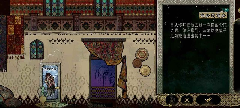 解锁舍馆(侠名3且有闲置房间)让法尔达克去一次,就会触发他的见老乡剧情(不排除有更高的侠名要求)。