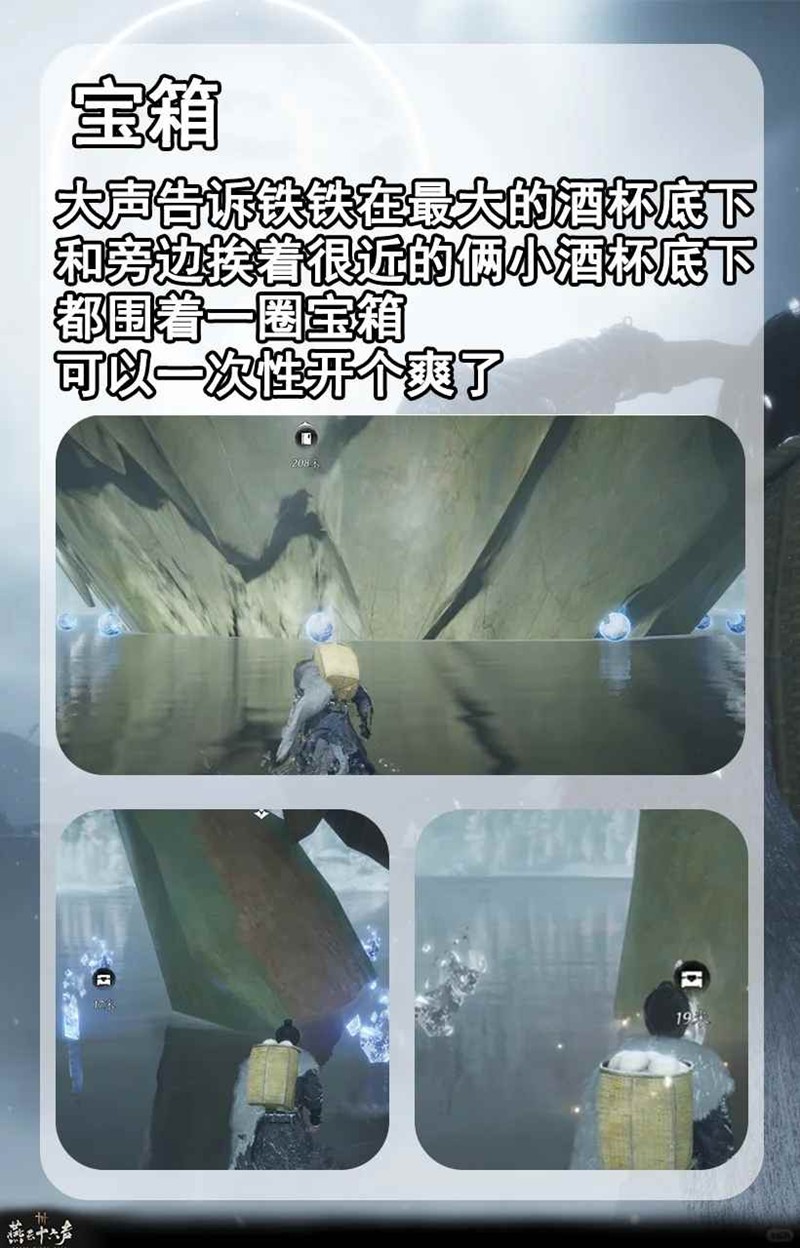 大声告诉铁铁在凉州地图最大的酒杯底下还有旁边挨着很近的俩小酒杯底下都围着一圈宝箱,可以一次性开个爽!