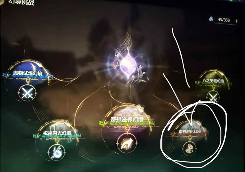 可以随便找个柱子,就是地图的传送点用那些多的材料换,1比100,我直接换了30个就是300体力。