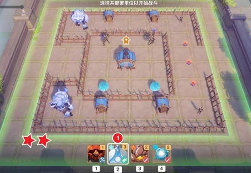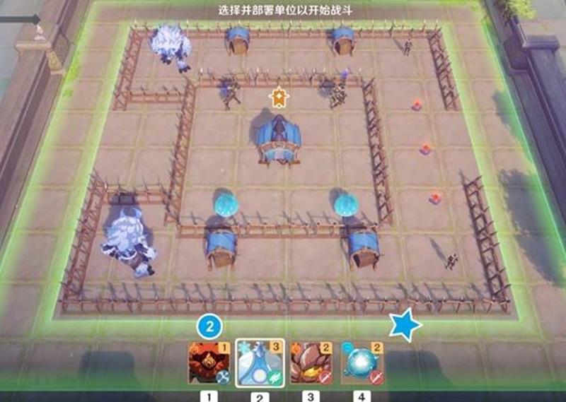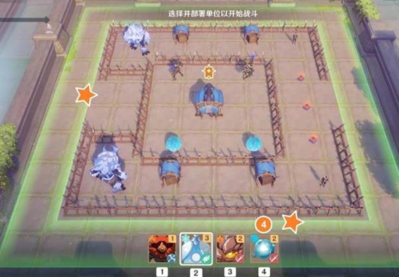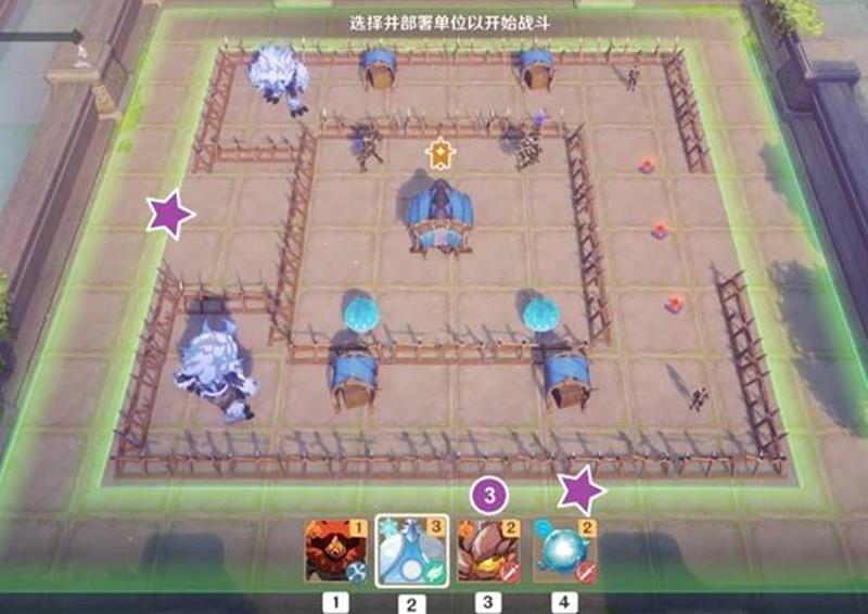 本关核心难点在于中央区域的压制特化型机关,建议优先集火解决该目标。开场时立即在战场左下角部署两只飘浮灵,利用其远程特性牵制敌方单位。同时在右下方布置一个丘丘人作为前排吸引火力,为后续部署争取时间。