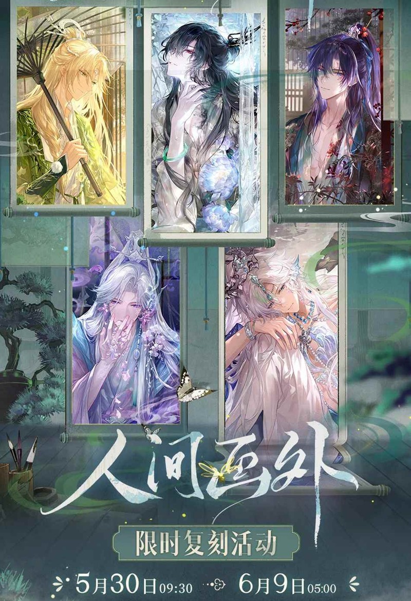 5月30日09:30 - 6月9日05:00,[画廊]开启「人间画外」卡池复刻。