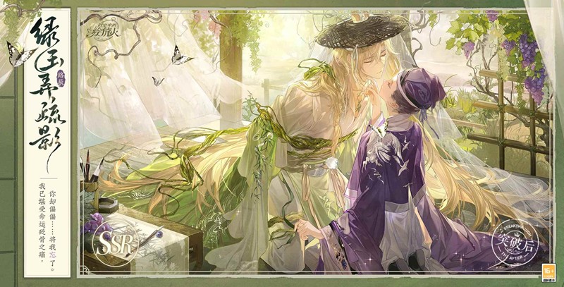 画灵艾因SSR[焚枝犹灵窍]、路辰SSR[绿玉弄疏影]、罗夏SSR[南浦待君归]、司岚SSR[并蒂尽河清]、叶瑄SSR[幽客映梦鸣]限时返场,获取概率提升。复刻结束后,该系列画灵暂无其他获取途径。