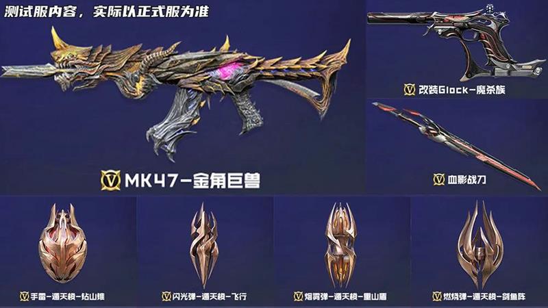 武器皮肤:新增AK47-轮回-诸神黄昏、马来剑-毁灭-现代金属等。