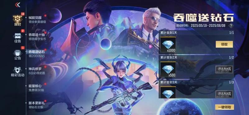 吞噬送钻石:活动时间为5月19日至6月8日,登录即可领取2000钻石、英雄之钥x1、典藏之骰x1。