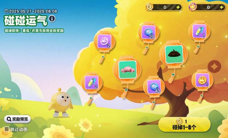 碰碰运气:使用许愿币参与【碰碰运气】活动,有机会获得稀有外观和道具。