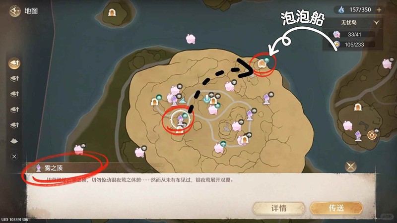 如果解锁了【悠游泡泡船】标志,可直接传送