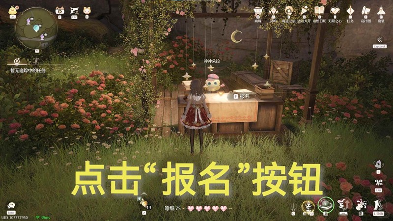 首先,我们传送到“咚咚小屋聚落”锚点,前往补丁大舞台。进入补丁大舞台后,找到报名处,点击报名按钮。在报名界面下方有一个“礼物预览”,点击一下,就可以看到微笑茶叶蛋布料啦。