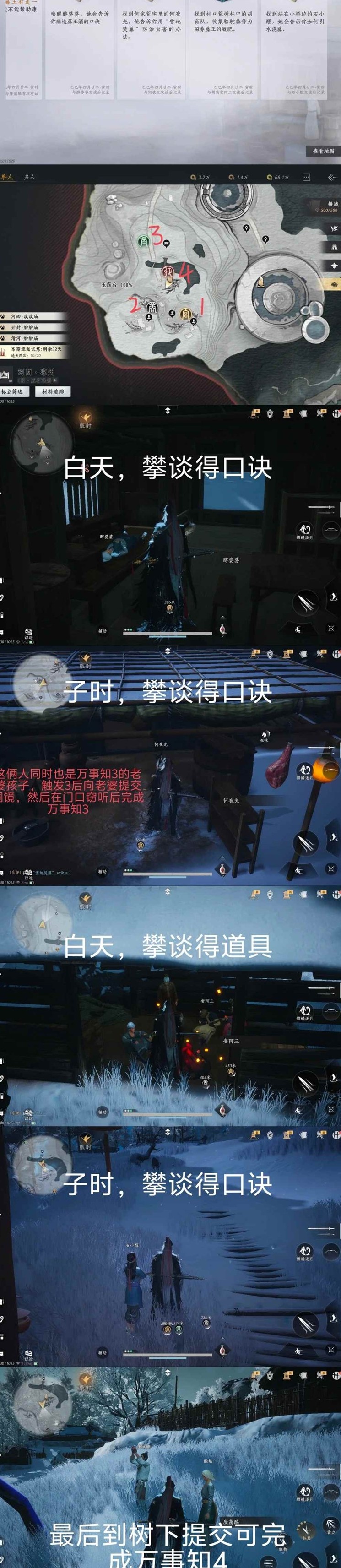 5. 玉露台区域万事知2345线性流程,万事知2流程和推荐2345顺序,万事知4搜集点位。