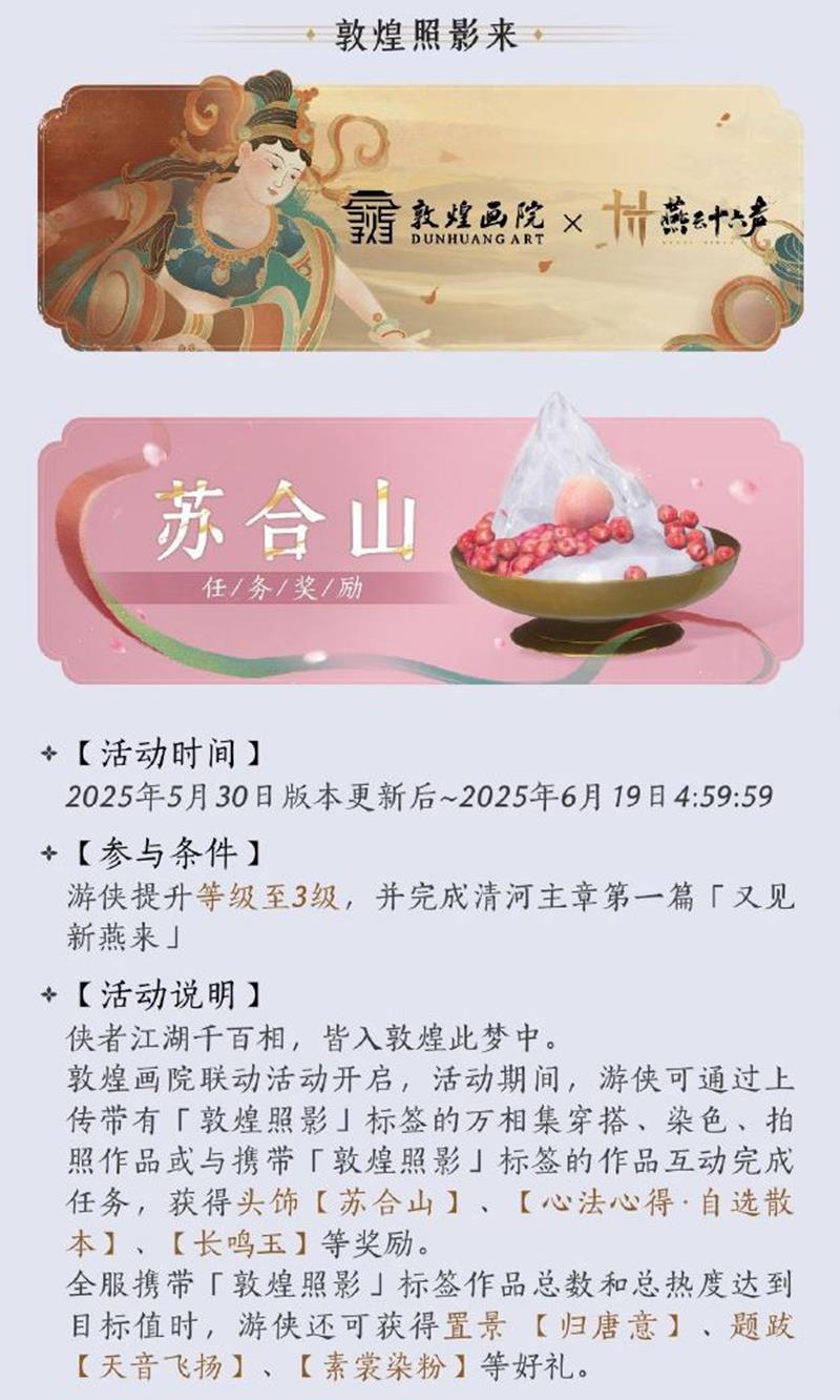 活动说明:游侠可通过上传带有 “敦煌照影” 标签的作品完成任务,获得多种奖励。