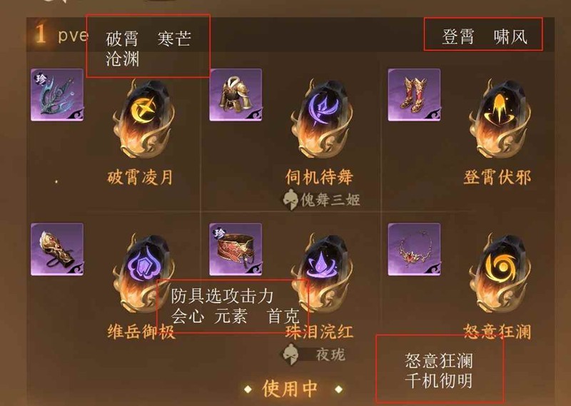 防具:防具可以带各种带有pve词条的 攻击力·元素攻·会心·首领克制