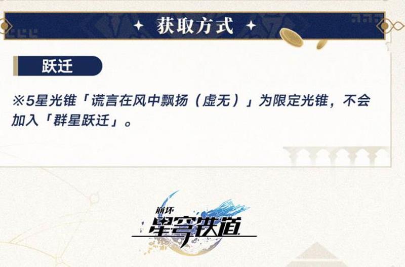 五星光锥:谎言在风中飘扬这是一款虚无属性的光锥,专为新角色赛飞儿设计。赛飞儿是一名量子命途的虚无角色,能够使敌方受到的伤害提高,并且可以记录我方伤害并基于此造成真实伤害。