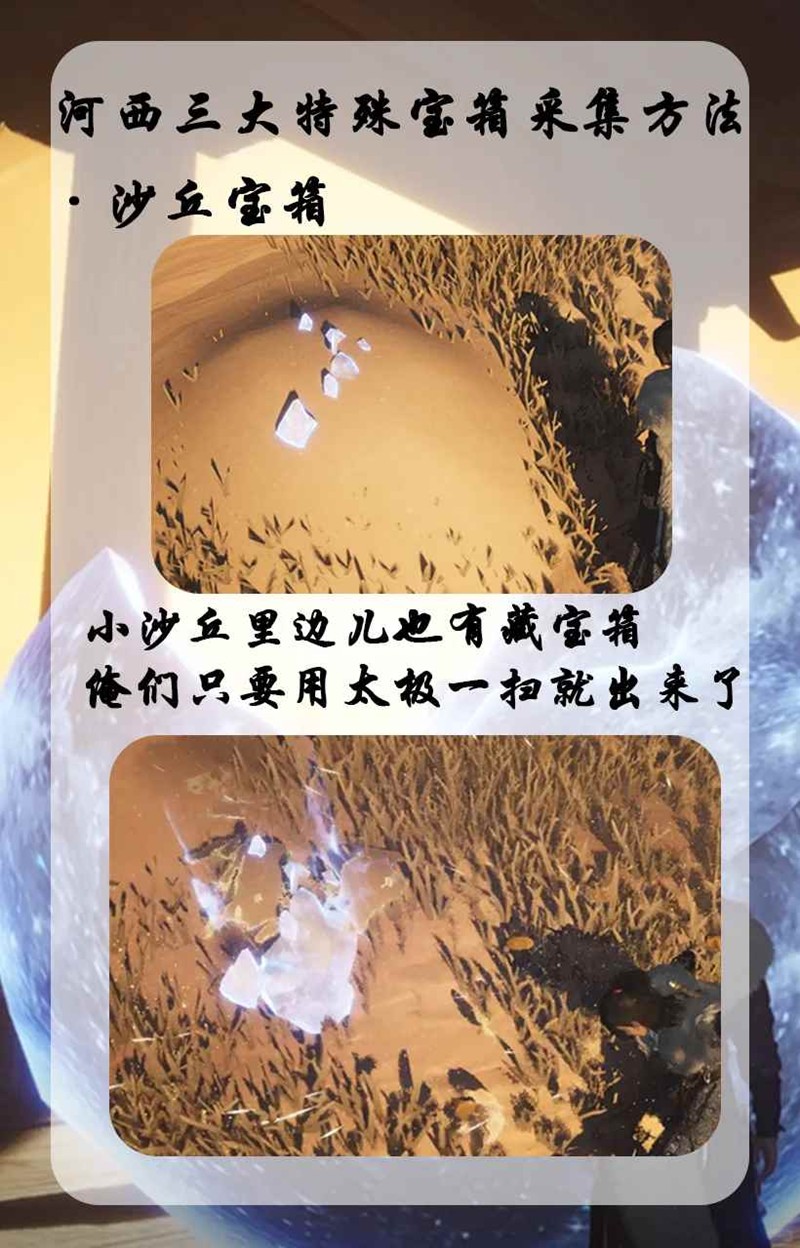 沙丘宝箱:小沙丘里边儿也有藏宝箱,俺们只要用太极一扫就出来了