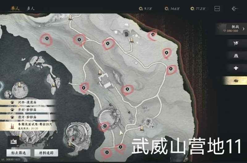5,武威山区域月影点位(13/15),头两个没想到这么麻烦漏记了,后来想起来标点死活想不起在哪儿。不过按点位分布来看应该在北边,以后有空跑空图再补。
