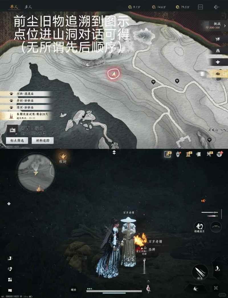 6,前尘旧物获取点和追溯点见,获取和追溯对话顺序无影响,可先跑完武威山对话过后再回天水集补。