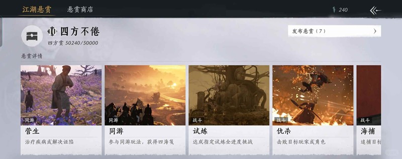 ②重点来了!点进同游悬赏和营生悬赏,切换着刷。同游悬赏是滴滴代游,不需要你和发布悬赏的人一起,只要你自己打满要求的同游币就会显示悬赏成功。