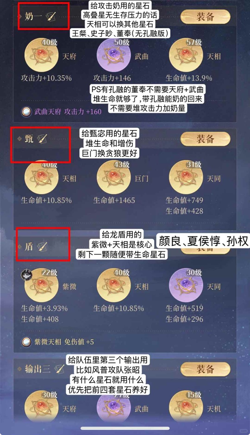【先把至少两套攻击主星一套生命主星都拉到全套30级,然后再把输出的增伤辅星拉到20,然后再开始拉主星拉到最高等级】