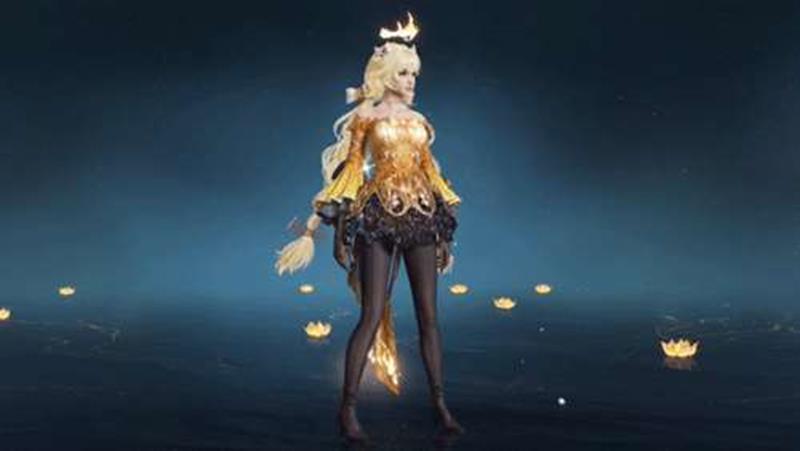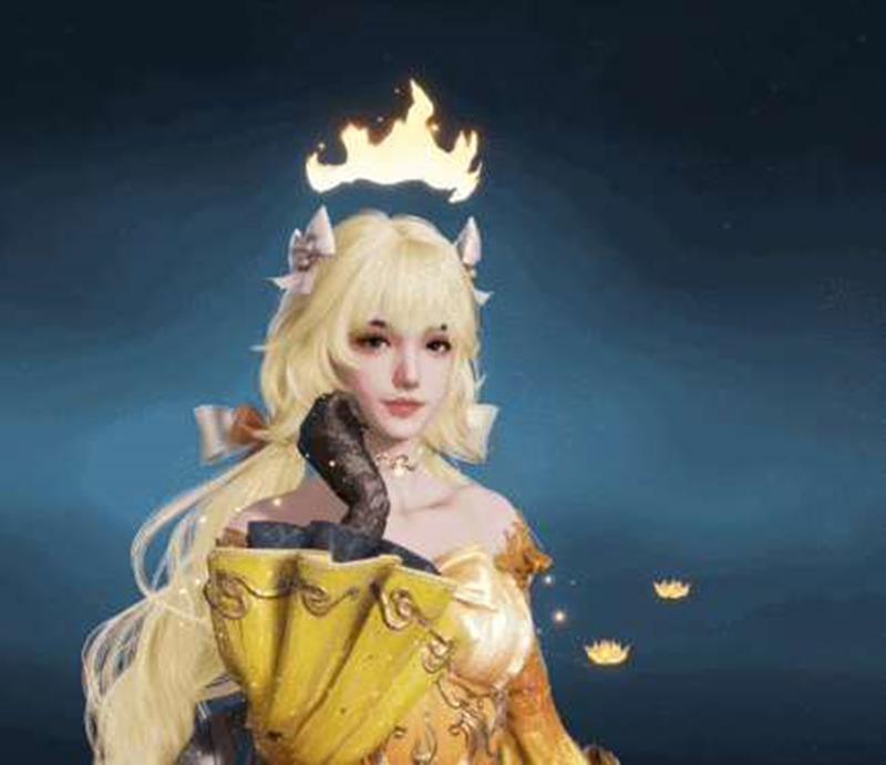 本次胡桃的时装设计灵感来源于经典童话《卖火柴的小女孩》。上身采用鎏金设计,焰纹流淌;下身则是暗夜垂落的星辉,仿佛是暗夜中骤燃的火种,金光撕开混沌,刹那永恒。金黄长发分作两股俏皮发辫,搭配六处蝴蝶结发绳,少女灵气扑面而来。