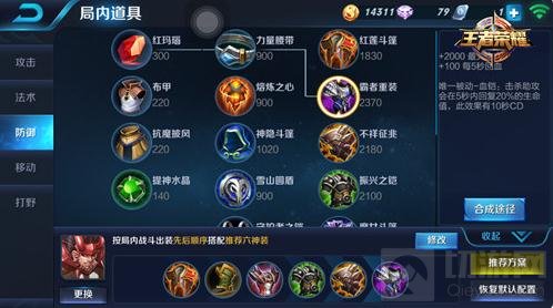 红莲斗篷是坦克英雄的首选,集物理防御,生命,伤害于一体,攻守兼备影忍之足,百分比减少物攻伤害,当前版本性价比极高反伤刺甲,提供了很高的物理防御,同时还以回馈伤害的方式来承受伤害,没出泣血的菜刀队根本不敢打你振兴之铠血量高,法防可观,被动的回血提高了廉颇的续航力,让法师头疼的一件装备不祥之兆能减少敌方30的攻击速度,对刺客和ADC来说极大的限制了他们的输出能力霸者重装提供了大量生命值,击杀或助攻恢复自身20血量,后期团战作用极大。