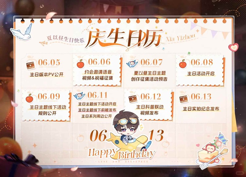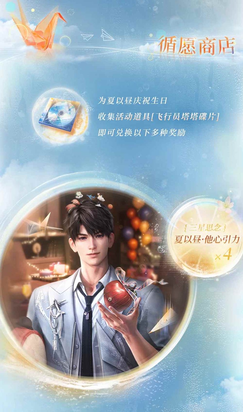 6月8日上午5:00~6月15日上午4:59,为夏以昼筹备生日庆祝,生日限定思念、日常服装、拍照动作、「深空许愿券·限时*20」等缤纷奖励等你获取!
