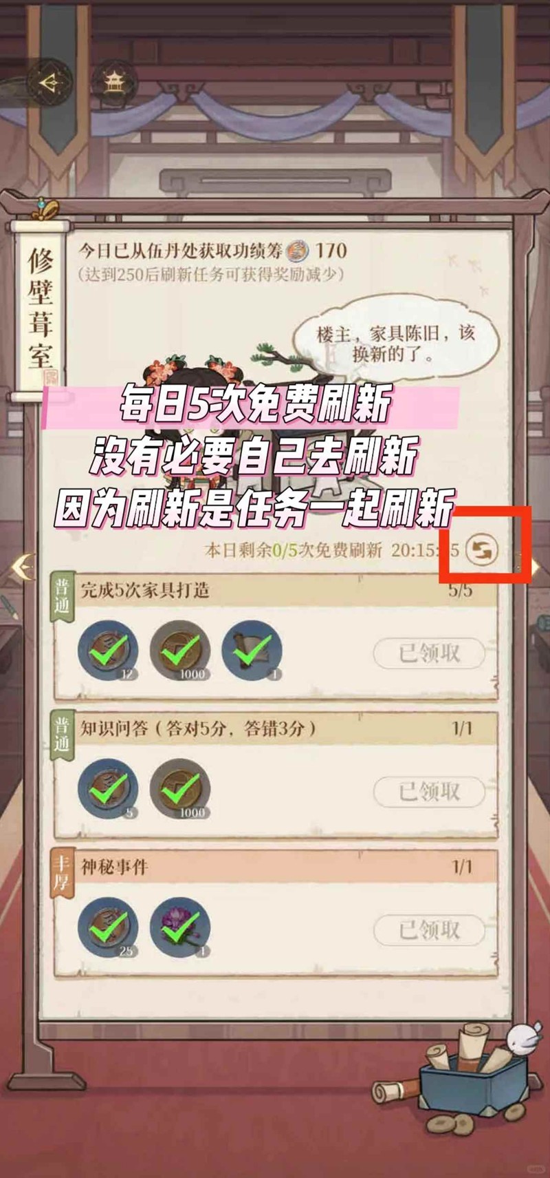 省流:就是做任务,做完→刷新,循环5次