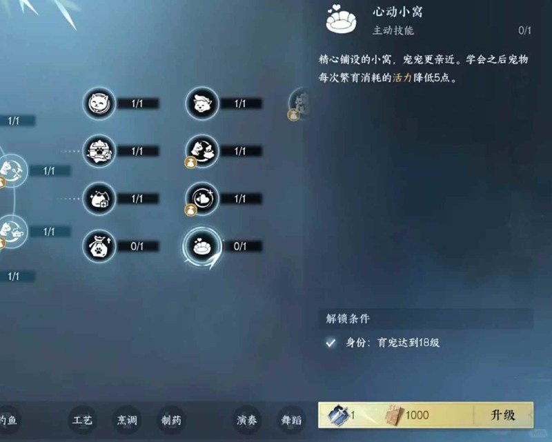 身份-育宠-技艺,解锁心动小窝,可再次降低5点繁育活力!