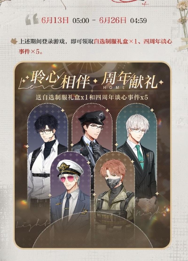 以上就是关于《光与夜之恋》四周年纪念活动的时间及安排。更多游戏资讯和攻略内容,敬请关注切游网,您的支持是我们努力的动力!