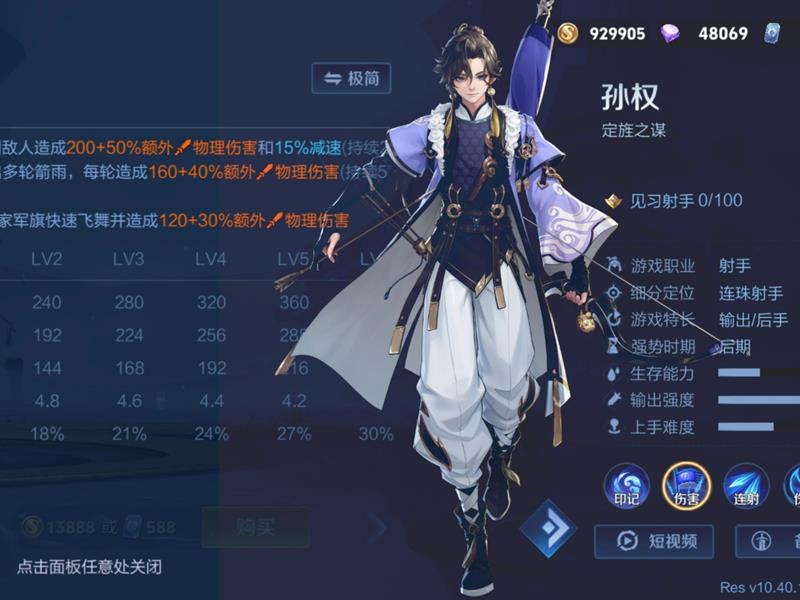 英雄调整:部分英雄的技能数值进行了优化,例如孙权的二技能基础伤害小幅提升,马可波罗的一技能子弹数量调整等。