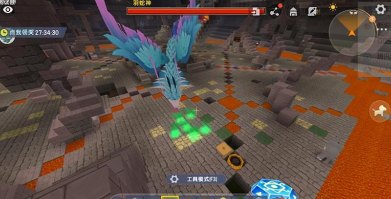 羽蛇神主要使用毒液喷射和击退技能,会频繁飞至空中发动范围攻击。建议利用神庙宽敞空间进行走位躲避,注意保持移动避免被毒液持续伤害。相比其他世界boss,羽蛇神的血量较低,使用常规武器即可顺利击败。