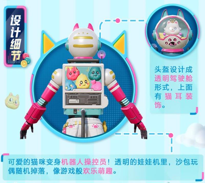 智趣喵喵系列皮肤以猫咪元素为核心,角色身着可爱的喵喵套装,仿佛变身成为机器人操控员,将甜蜜洒满埃斯特克。皮肤在设计上融入了大量萌趣元素,从服装到配饰,每一个细节都充满了猫咪的灵动与可爱。
