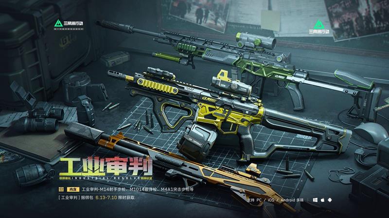 工业审判捆绑包包含工业审判-M14射手步枪、M1014霰弹枪、M4A1突击步枪,以及工业审判系列挂饰、头像、军牌和喷漆。获得方式是花费2400三角券或三角币。如果干员们对这些内容感兴趣,一定要在下架前抓紧时间获取。