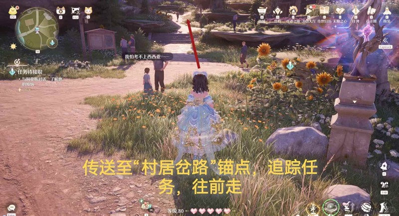 我们传送到“村居岔路”锚点,然后点击追踪任务。