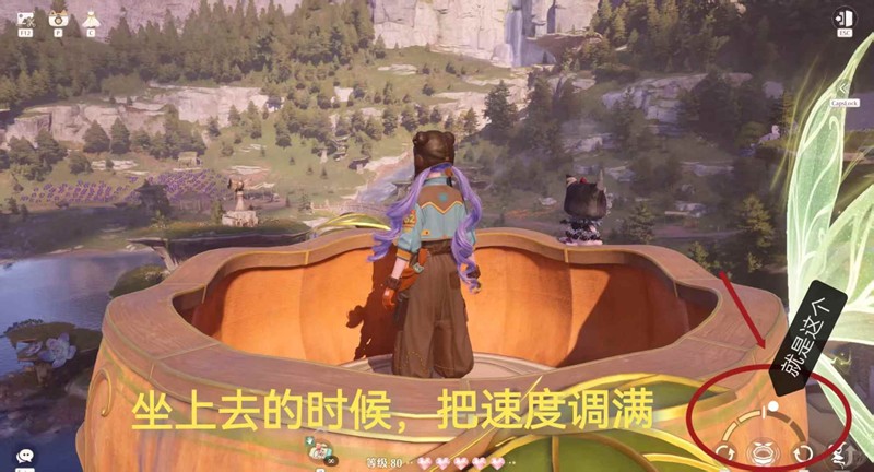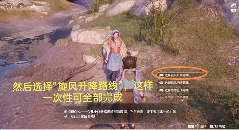 和她对话,乘坐咚咚窝瓜杯,然后选择第一个“旋风升降路线”,这样一次性可以完成两个任务。