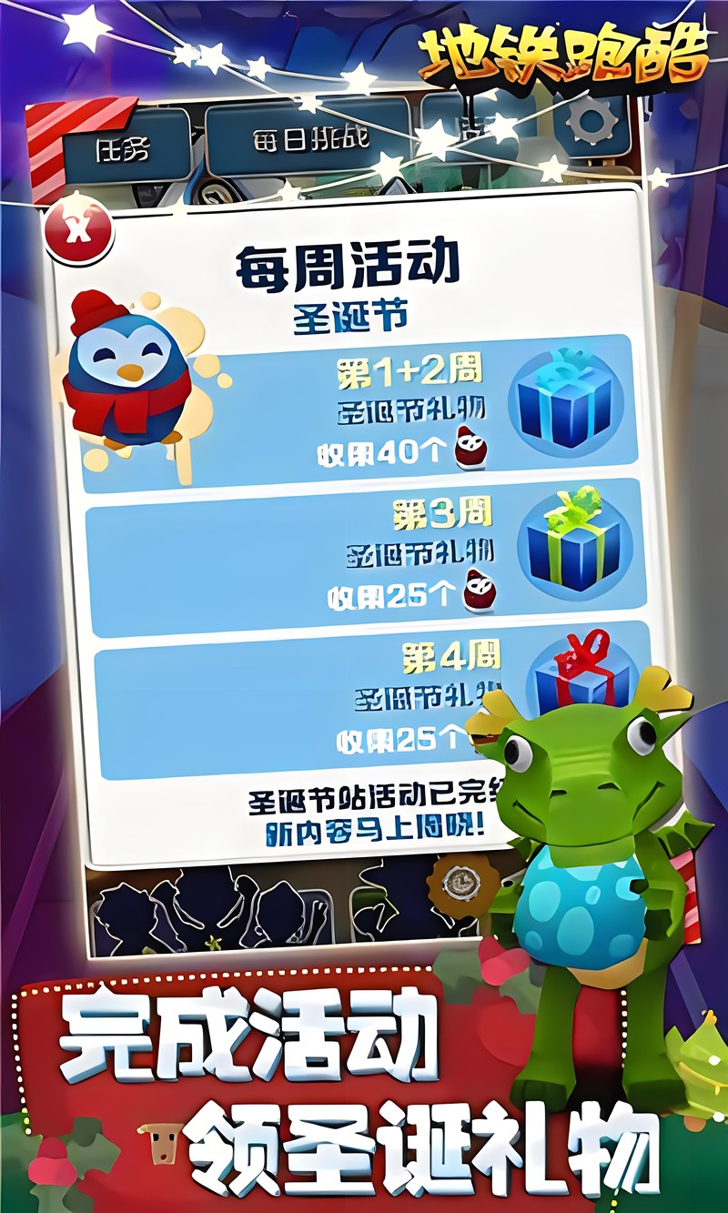 地铁跑酷除了每日挑战外,还有丰富的活动系统。每周活动、等级任务以及节日限时活动都能带来额外的奖励。这些活动配合每日挑战,可以让玩家更快地积累资源,解锁新角色和道具。每日挑战作为最基础的福利活动,是每位玩家都不应该错过的内容。