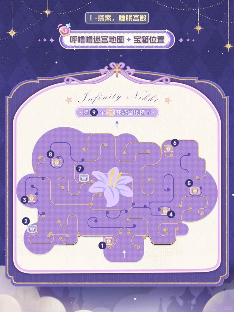 无限暖暖是一场收集美好的冒险之旅,暖暖将和大喵一起,游历奇迹大陆上风土文化各异的幻想国度,邂逅形形色色的人与充满奇思妙想的生物,并能够通过各种途径收集不同风格的精美套装。旅途中,暖暖和大喵也会遇见神奇的境况、难解的谜题——两人齐心协力克服困难,是彼此冒险路上最好的伙伴。那么游戏中新活动呼噜噜睡眠迷宫宝箱位置在哪呢?小编为你准备了一份攻略,一起来看看吧~