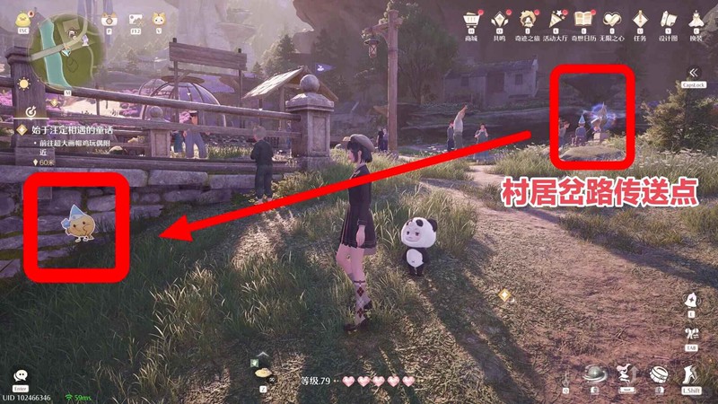 从小石树田村的「村居岔路传送点」前往靠近画帽鸡蹦床这边的桥头