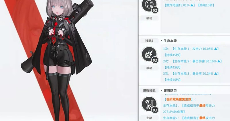 被动技能方面,贝斯蒂拥有两个强力效果。想象成真被动在蓄力攻击全部命中时,能使爆炸范围内的伤害提升8.87%。生存本能被动则能在使用爆发技能时提升3.16%的基础攻击倍率,持续30秒。如果在生存本能效果期间使用爆裂技能,还能额外获得13.2%的暴击伤害加成。