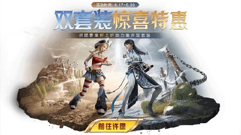 “荒原牛仔”皮肤将在6月17日至6月30日期间开启限时活动。玩家可以通过2人组团许愿的方式享受折扣,所有团内成员均可3折获得5个牛仔币和5个云鹰币。此外,玩家还可以通过消耗20点券购买2个兵团币来获赠1个牛仔币,用于在荒原牛仔奖池中许愿。每次许愿有概率额外获得【云鹰币】5折购买折扣券,许愿50次内必得套装。