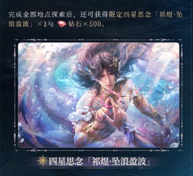 活动期间,玩家将与祁煜一同探索罗镜城,解锁专属剧情和小故事。完成全部探索后,还可获得限定四星思念和钻石奖励,同时参与活动可免费获取四星日冕套装思念「祁煜·坠浪盈波」和「祁煜·坠浪神威」。此外,还有机会获得三星思念「祁煜·遥祈」。