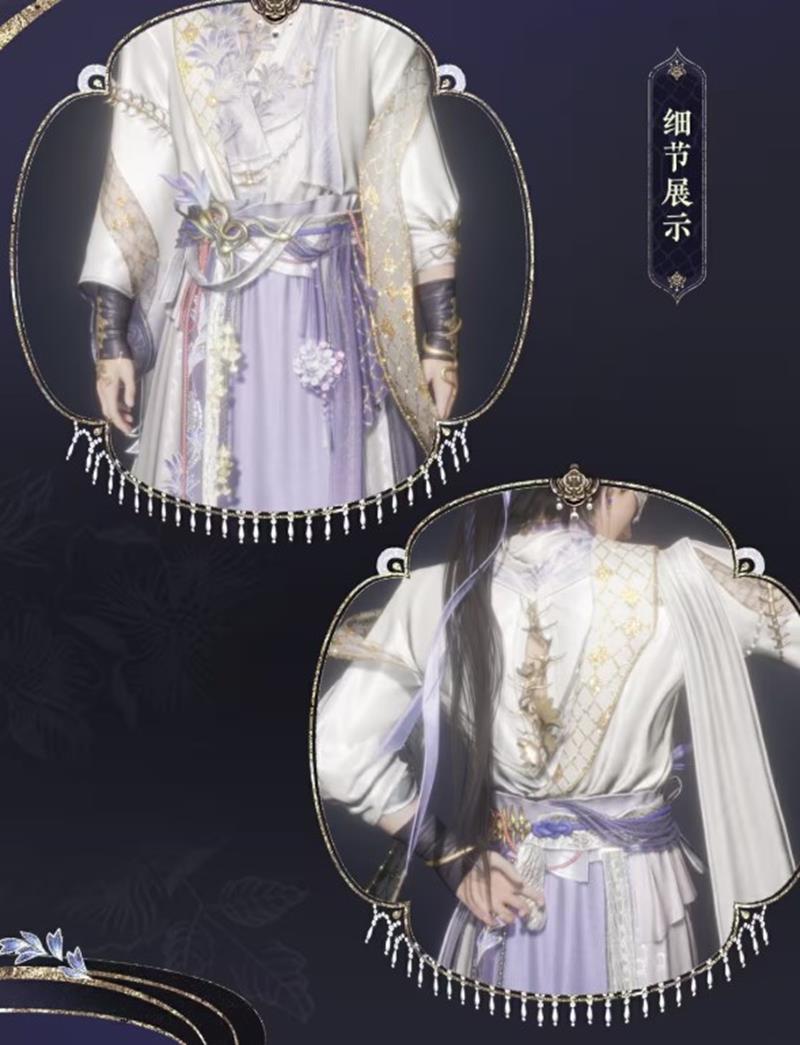 我们可以看见,【落花闻诏】套装的设计风格充满了古典韵味,整体造型优雅而华丽。服装上采用了精美的刺绣工艺,搭配独特的配色,展现出一种古典与现代相结合的美感。细节之处的设计更是别具匠心,无论是服装的剪裁还是配饰的选择,都显得格外用心。