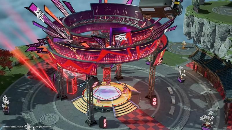 蓬莱岛主题舞台:蓬莱岛四灵台处将升起一座《女神异闻录5皇家版》主题舞台,玩家可以与雨宫莲等角色的立牌合影,并通过DJ台选择音乐。