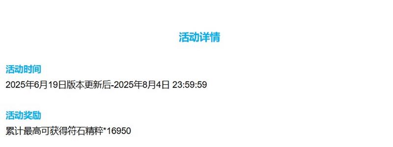 活动时间:2025年6月19日版本更新后至2025年8月4日23:59:59。