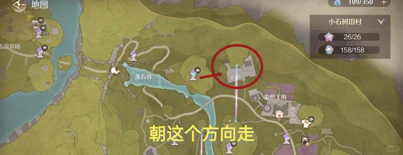 我们传送到“染织工坊旁石树”锚点,然后朝后面走,向染织工坊的方向走;