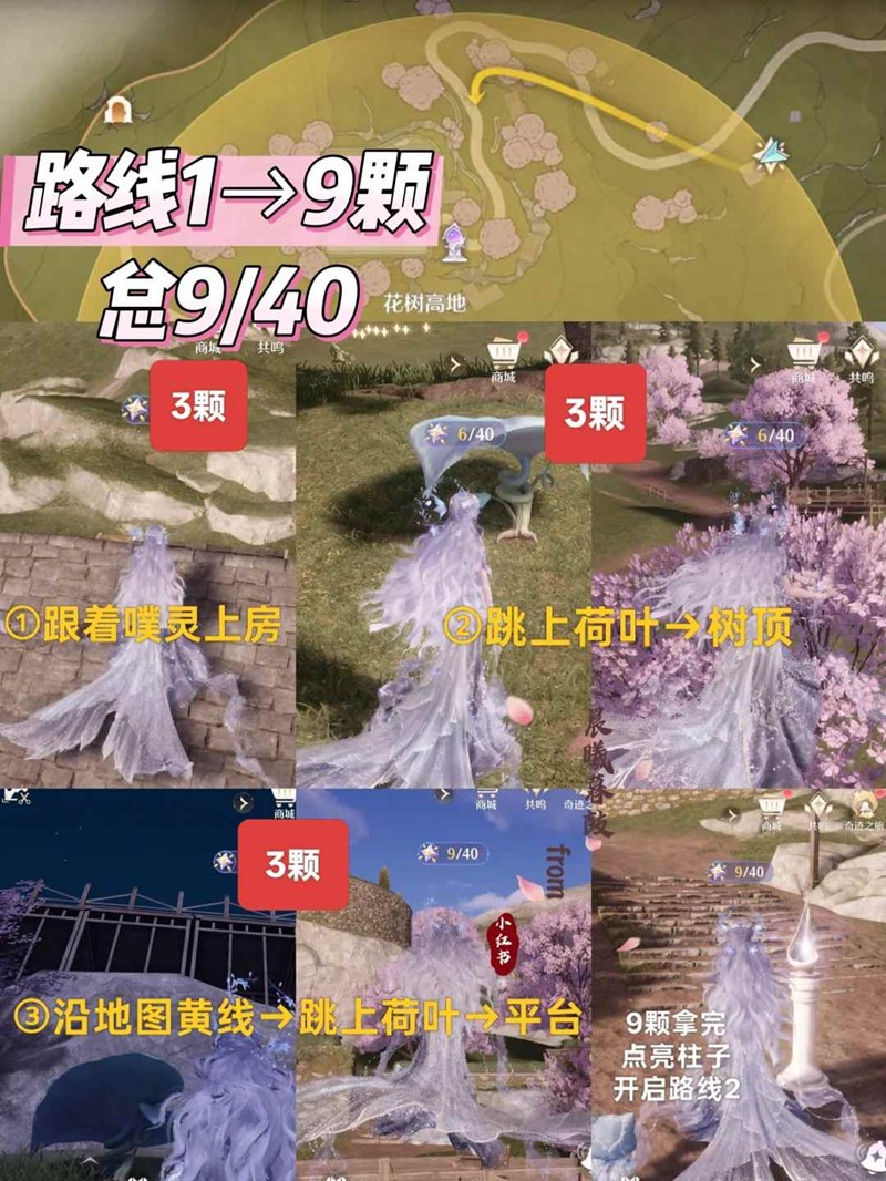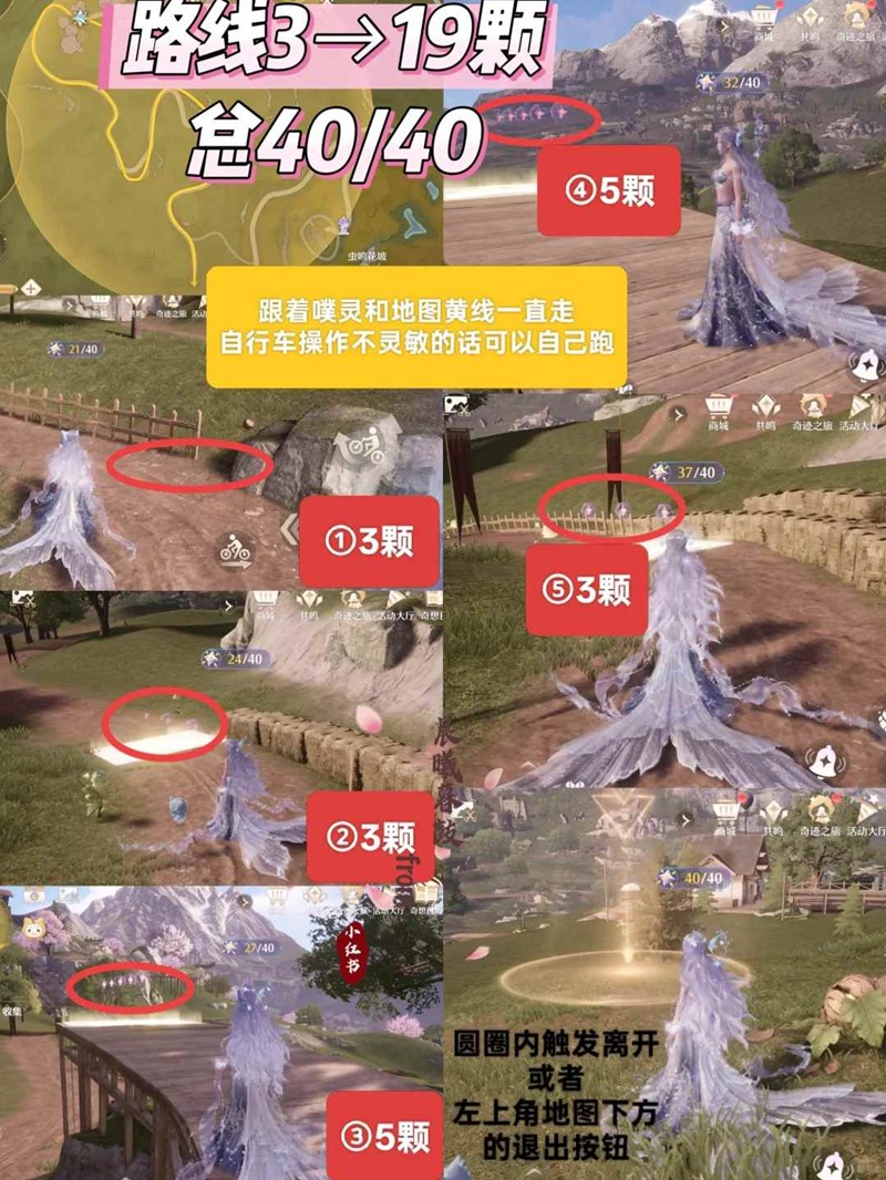 3 花树高地,路线3可选择自己跑/自行车,都不影响收集