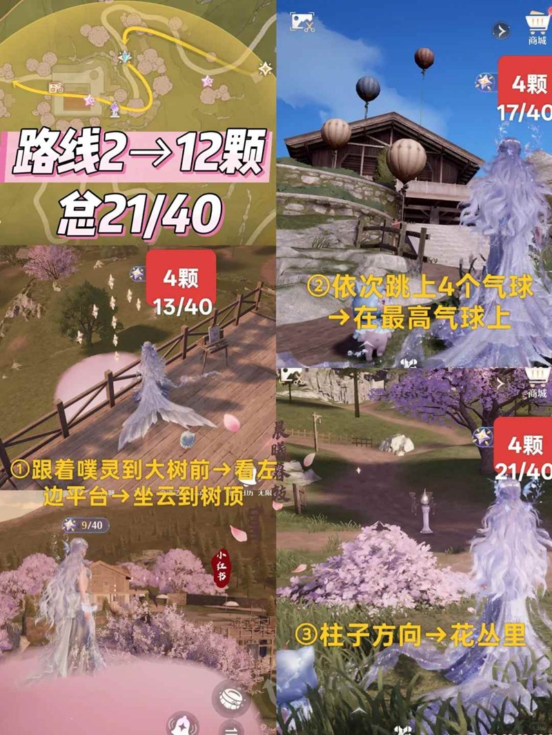 5 星空钓场,路线2空中5颗要注意,路线3的云朵停了立马开飞花,拿完进绿圈自动下降到小船里
