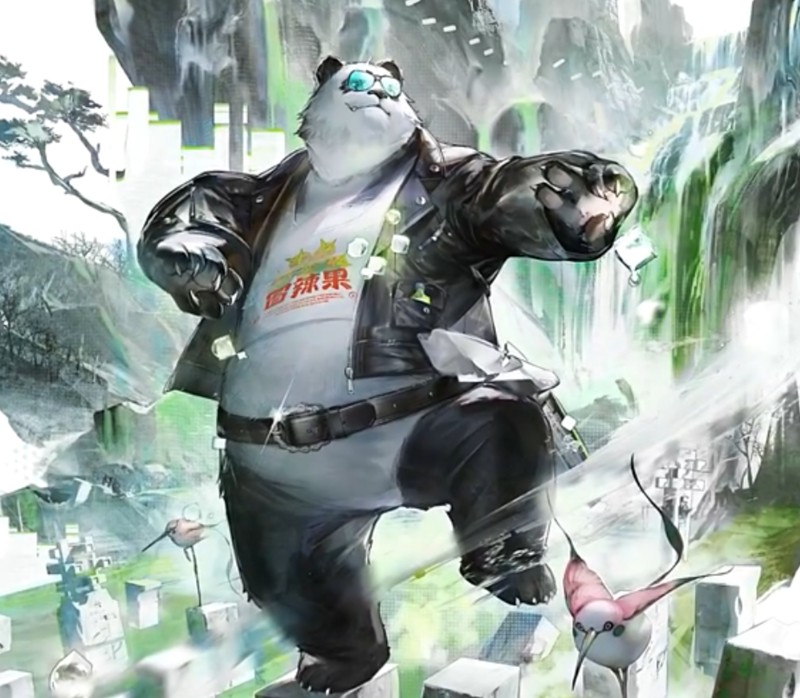 这个角色的最大特色就是融合了传统熊猫元素与现代潮流风格。他戴着标志性的墨镜,背着巨型炊具,形成了强烈的视觉反差。这种设计既突出了科技后勤人员的特征,又保留了大潘憨厚可爱的熊猫气质。