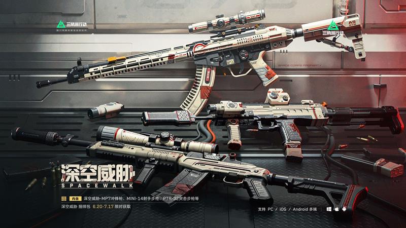 深空威胁系列包括MP7冲锋枪、PTR32突击步枪和Mini14射手步枪的传说级外观。