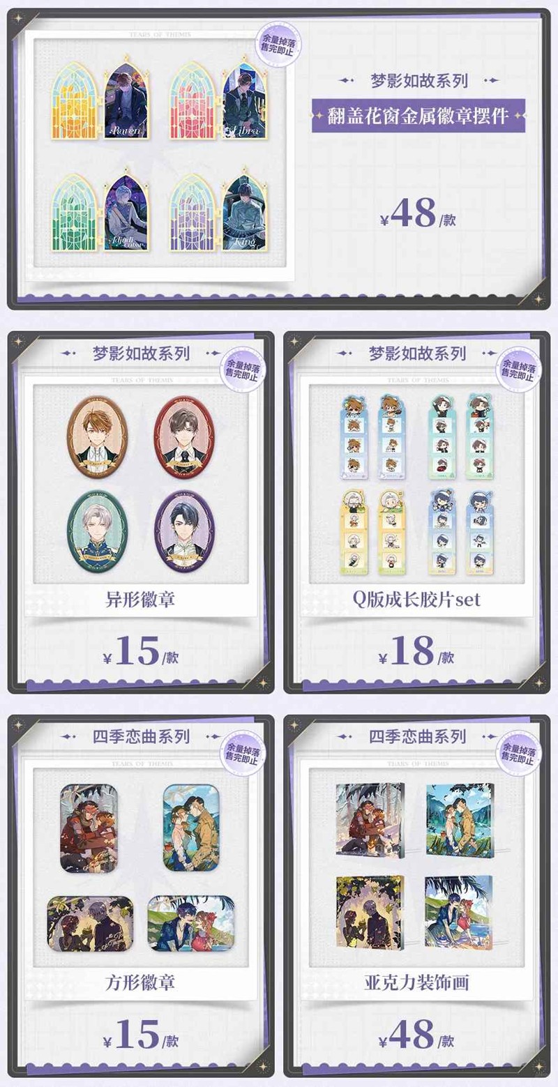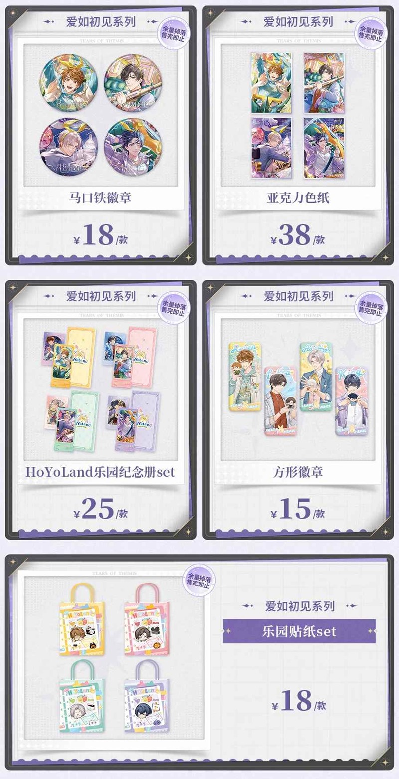 -「爱如初见」、「梦影如故」、「四季恋曲」、「荒野炙味」、「匠籽觅趣」、「丝忆如饴」系列周边余量掉落