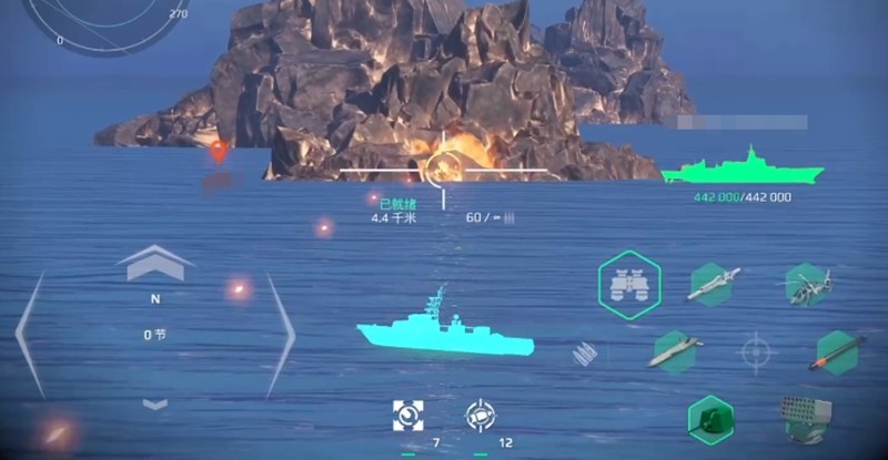 在操作方面,现代战舰采用了虚拟摇杆控制方式。通过前后推动屏幕左侧的虚拟摇杆,可以控制战舰前进和后退。右侧屏幕则是瞄准射击区域,玩家可以通过手指滑动来瞄准敌方目标,点击射击按钮即可发动攻击。这套操作模式简单直观,新手也能快速掌握。